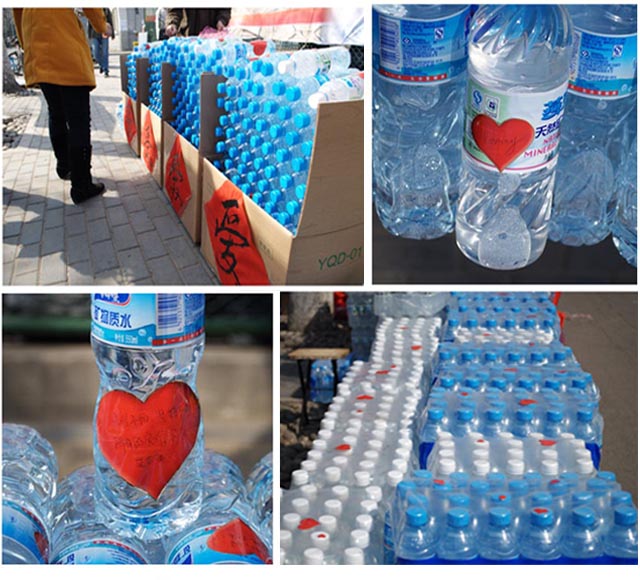 此次定向捐助的山乌果村完小学,是一所少数民族小学,位于重灾区云南省曲靖市师宗县葵山镇,为帮助学校160名师生尽早解决缺水问题,校研究生会、校学生会、校社团联合会将携手发动并团结一切力量,将饮用水第一时间送到他们的手中。“如果世界给你一滴水,我在每滴水中再给你一份爱!”、“同甘共苦,灾区挺住!”、“山乌果村完小的孩子们,加油!”、“相信自己,北理工与你们共渡难关!”一句句情真意切的话语,让一瓶瓶清澈的饮用水中,溶入了北理工学子浓浓的情意!