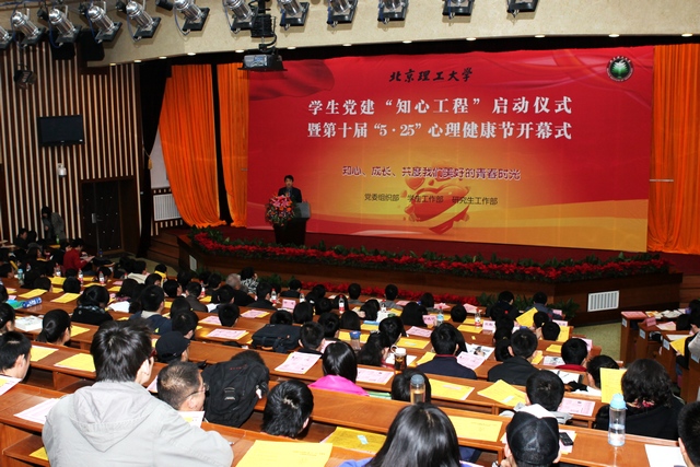 启动仪式上,杨海首先介绍了“知心工程”实施方案。他指出,在信息时代,网络给人们带来便利的同时,也拉开了人与人直接交流的距离,开展“知心工程”就是希望广大同学能够打开心扉,畅所人生与理想,营造积极向上的班风、学风,促进基层党建创新。各党支部要抓住机遇促进同学之间、党员之间、师生之间、党群之间的相互了解,充分发挥学生党员在学生中的辐射、示范作用,切实帮助广大同学们共同进步。随后,我校心理健康教育与咨询中心副主任李旭珊介绍了本次“5•25心理健康节”的活动安排。本次健康节以“我爱 爱我 成长”为主题,旨在促进学生自我发展与助人能力的提升,期望广大同学能相互关爱、互帮互助,共同携手度过美好的大学时光。围绕这个主题心理健康节策划了一系列的活动,包含心理论坛、各类团体辅导、展现大学宿舍生活的DV大赛、身心放松活动、心理读书会、电影沙龙、心理主题日等等丰富多彩的活动。