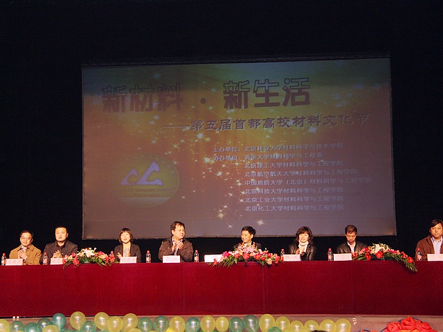 4月11日晚,第五届首都高校材料文化节在北京林业大学隆重开幕,来自德赢AC米兰中国官方网站、北京科技大学、北京化工大学、北京航空航天大学、清华大学、中国地质大学、北京工业大学以及北京林业大学八所高校材料院系的师生出席了开幕式。本届首都高校材料文化节的主题是“新材料,新生活”,口号是“低碳,我行”。作为北京市高校材料文化节的发起者、高校材料联盟成立的倡议者和第一届材料文化节的承办方——德赢AC米兰中国官方网站材料学院副书记副院长韩笑、研工委书记刘艳、分团委书记李紫千受邀出席了开幕式,材料学院十余名学生参加了开幕式。