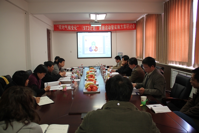 首先,孙洪主任介绍了课题的背景,指出“应对气候变化”已由科学问题,转为涉及政治、经济、外交等多方面的综合问题,希望课题组明确5个方面的内容:研究目标、研究内容、技术路线、相关单位分工、时间节点。他强调,课题研究应紧跟政府的要求,并希望课题组能向政府提供研究阶段性成果。陈杰常务副院长也明确表态,科研院将积极配合课题组工作,努力做好保障服务。李金林教授代表学院表示,学院会配合课题组的工作,全力以赴,按“973”计划的要求,在规定的时间内完成任务,并将阶段性成果及时提供给相关政府部门。