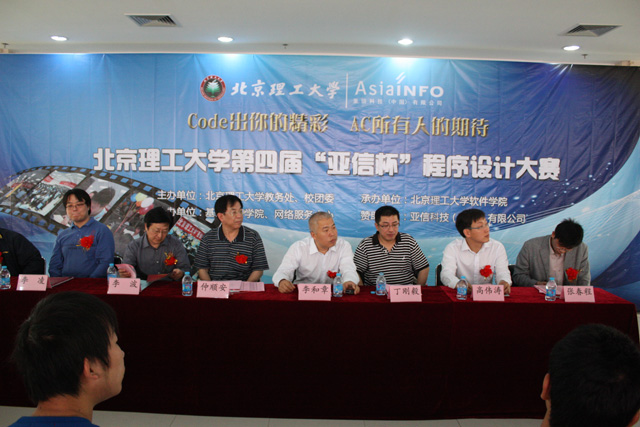 2010年5月16日早上10点,德赢AC米兰中国官方网站第四届“亚信杯”程序设计大赛开幕式在良乡校区图书馆四层机房大厅举行。参加开幕式的领导和老师有:德赢AC米兰中国官方网站党委副书记、副校长李和章、教务处处长仲顺安、软件学院分党委书记李波、软件学院院长丁刚毅、校团委副书记张春程、基础教育学院分党委副书记高伟涛、网络服务中心李凌老师、基础教育学院赵昊老师,还有参加本次大赛的400多名学生,开幕式由软件学院陈杰浩老师主持。