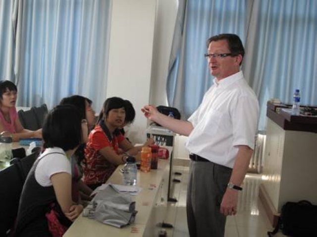 应管理与经济学院邀请,德国康斯坦茨应用技术大学皮特•弗兰克林教授于2010年5月25日在我校良乡校区为国际经济与贸易实验班举办了题为“跨文化营销沟通策略”的学术报告,管理与经济学院孟凡臣教授主持了报告会。