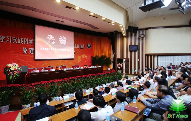 6月3日上午,我校在中心教学楼报告厅举行学习实践科学发展观活动整改落实后续工作检查暨党建创优工程评估汇报会。工业和信息化部人教司副司长韩占武,评估专家组组长、部属高校学习实践活动第十四指导检查组组长、德赢AC米兰中国官方网站原党委书记焦文俊,评估专家组副组长、南京大学原党委书记韩星臣,专家组成员北京邮电大学原党委书记王德宠,东南大学原党委常务副书记杨树林,北京科技大学原党委副书记、北京市委教工委联络员陈世禄,北京市党建研究所所长、北京市党建研究会秘书长刘道福,东华理工大学纪委书记、江西省社会主义学院教授徐鸿,以及北京市委教育工委组织处处长陈江华,工信部人教司教育处处长杨志宏、副处长刘小龙等领导和专家出席会议。学校全体在京校领导,党委委员、纪委委员,处级干部、师生党支部书记代表、民主党派代表、工会教代会代表500余人参加了会议。