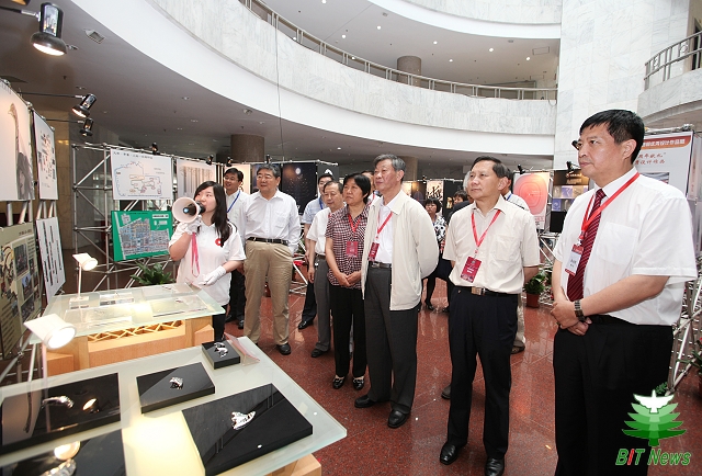工信部检查评估组专家在校领导陪同下参观了学校德育答辩图片展、共青团工作成果展。