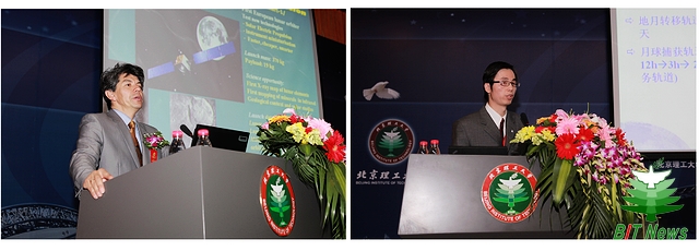 会上,Bernard Foing作了题目为“From Robotic Village to Lunar Bases”的报告。介绍了欧洲航天局首枚月球探测器SMART-1(“智慧—1号”)号的探测任务及执行任务的整个过程和国际月球探测工作组的情况,包括研究的关键问题、将来研究规划和全球合作情况;彭兢作了题目为“中国月球探测器”的报告。介绍了中国探月工程,就“嫦娥一号”月球探测器进行轨道探测中的工程问题和在轨道设计、导航制导与控制等方面遇到的技术问题进行了全面讲解,并与世界同期月球探测器进行了对比,使参会的青年教师和学生对我国太空探索有了直观的了解和认识。