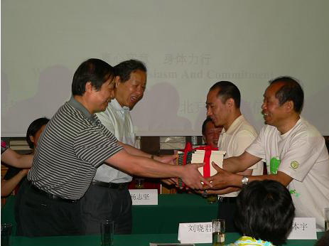 出版社社长杨志坚和自然之友理事长杨东平向社区代表赠书