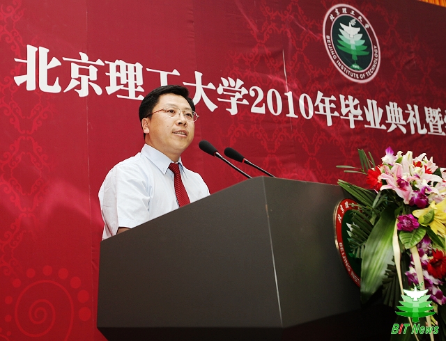 校长胡海岩在毕业典礼上致词。胡校长代表学校党政领导和全体师生向2010届毕业研究生圆满完成学业表示热烈的祝贺,向为研究生毕业付出智慧与辛劳的全体导师和教职员工表示衷心的感谢,祝愿每一位同学用追求科学的力量实现未来的梦想。胡校长借此为每一位毕业生提出了期望和祝福:期望同学们以崇尚科学之心做胸怀坦荡、光明磊落之人;以崇尚科学之心做志存高远、脚踏实地之事;以崇尚科学之心做博大精深、严谨卓越之学问。
