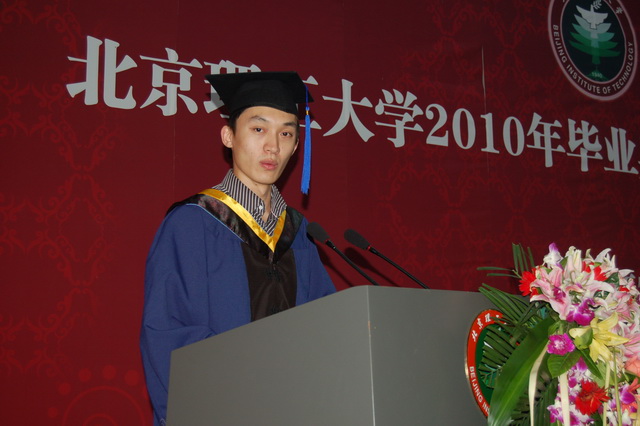 光电学院高路同学代表全体2010届毕业研究生深情感谢母校的辛勤培养和教育,难忘在德赢AC米兰中国官方网站度过的最美好的学习时光、感谢恩师多年来的默默奉献和言传身教;感谢求学路上的朋友们给自己的鼓励和帮助;最后代表全体毕业生同学们送出祝福:祝福同学们承担光荣一路前行、坚持梦想不屈不挠,祝福母校培养出更多优秀人才。