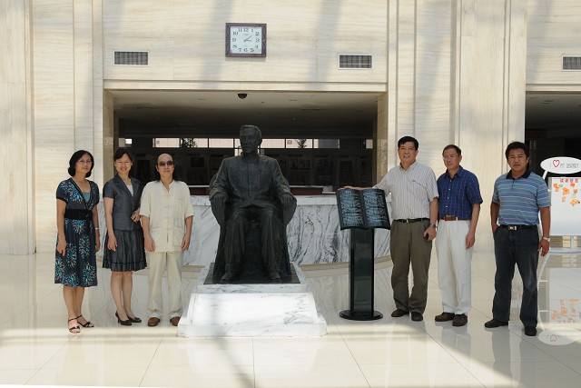 7月8日下午,党委副书记、工会主席侯光明到良乡校区指导校园文化建设工作,陪同的有国内著名书法家甘霖先生、学校文化建设办公室(党委宣传部)主任贺亚兰、良乡校区管理处处长徐承俊、图书馆副馆长马宏伟、人文学院副院长张增一。