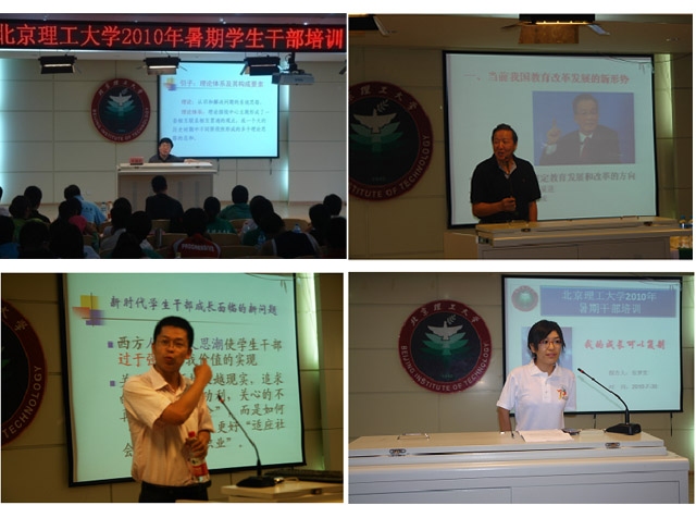 奉献社会,收获成长。此次干训新增加了“宣传校庆”的社会实践活动, 7月29日下午,在经过之前的“头脑风暴”与紧锣密鼓的准备,培训班十个小组从志愿服务、创业体验、校庆宣传、体察民生、科技帮扶等社会实践活动。学生们沿海边浴场向扮演不同社会角色的路人介绍北理工及校庆情况,更有幸的是,遇到了多位我校校友,在与学生们热烈交流的同时,送上了对母校真挚的祝福。相信此次活动能够在北戴河游客的心中刻下深刻的烙印,形成 “北理工情节”。