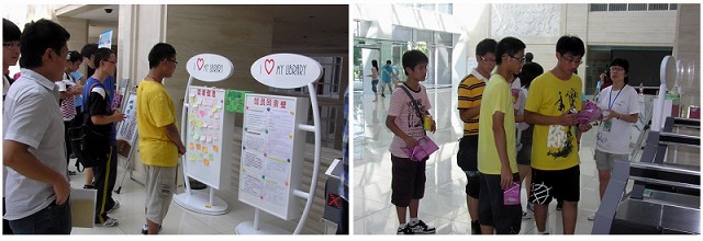为更好地迎接新同学的到来,图书馆组织北理“绿风志愿者”来到图书馆服务,学长们放弃休息时间,连续三天在图书馆大厅热情接待每一位到馆的新生和家长,并提供全程引导服务。