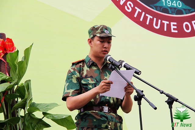 十九连学员倪大元代表全体参训学员庄重承诺,在军训中坚决服从命令,遵守纪律,严格要求,以高昂的斗志迎接军训中的考验,以优异的成绩圆满完成军事课的各项内容,为母校七十周年华诞献礼。军训旅王泰鹏老师代表全体指导员发言,他表示全体带队干部将全身心地投入到军训工作中,严守工作纪律,树立责任意识,增强安全观念,关心帮助同学,以身作则,充分调动学生参与军训的积极性,确保军训工作顺利开展。军训办公室副主任马晓宁介绍了今年军训的总体计划和时间安排。