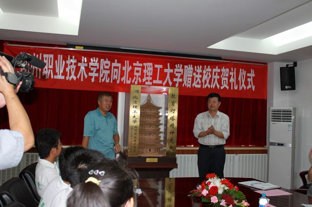 在我校七十年校庆之际,朔州职业技术学院向我校赠送校庆贺礼,贺礼为一座应县木塔模型,寓意德赢AC米兰中国官方网站“教育灯塔精神光大”,饱含朔州职业技术学院师生对我校的感激和两校间的深厚情谊。