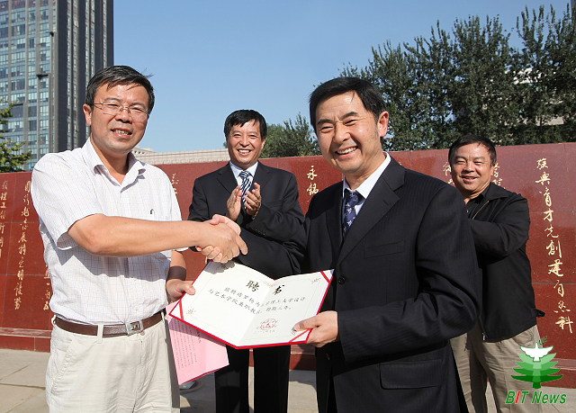 9月23日下午,我校在中关村校区东门举行了《理工赋》揭幕仪式。中国文联办公厅主任、中国书法家协会理事、中国著名书法家罗杨,副校长杨宾,党委副书记、工会主席侯光明,副校长赵平等出席了仪式。
