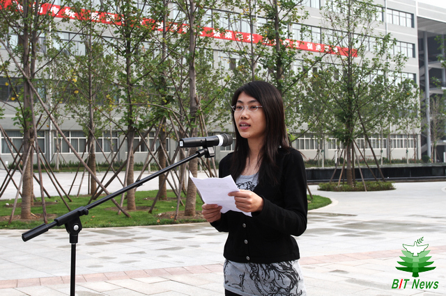 学生代表李白冰先后发言中表示将继续继承和弘扬延安精神,始终以“德以明理 学以精工”为指引,努力做一个志向高远、学术精深、体魄强健、心境恬美,富有社会责任感、创新精神和实践能力的社会主义建设者和接班人,用我们的实际行动为北理工的明天谱写更加璀璨的华章!