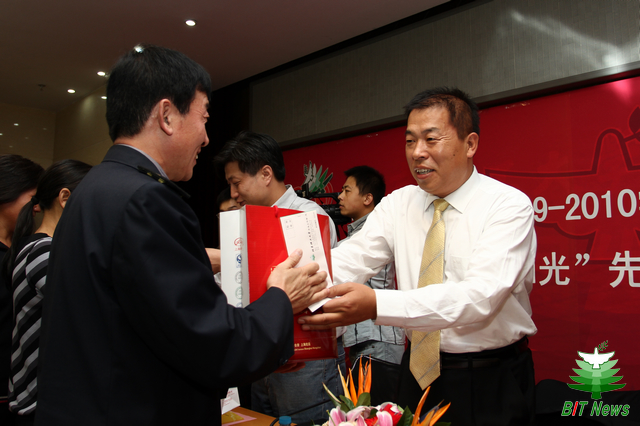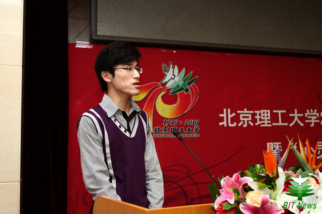 9月24日下午,北理工举行2009-2010学年“励志先锋”表彰暨“心灵阳光”先锋团成立仪式。党委副书记、副校长李和章、招生就业处处长郝志强、研究生工作部部长郝洪涛、良乡校区管理处处长徐承俊、宣传部副部长李跃华、教务处副处长曹峰梅、北京市美联福恒远超市经理黄文祥等出席会议,20位获奖学生及部分获奖学生的家长、部分2010级本科新生参加了仪式。仪式由学生工作处副处长许欣主持。