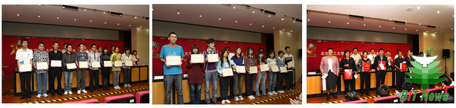 表彰仪式上,与会领导为获奖学生发放了荣誉证书。本次“励志先锋”评选得到了我校良乡校区管理处及北京美联福恒远超市的大力支持,活动的各项经费均由北京美联福恒远超市独家赞助。表彰仪式上,徐承俊处长和黄文祥经理特意为学生家长赠送了校庆礼品和在京期间的生活补助。