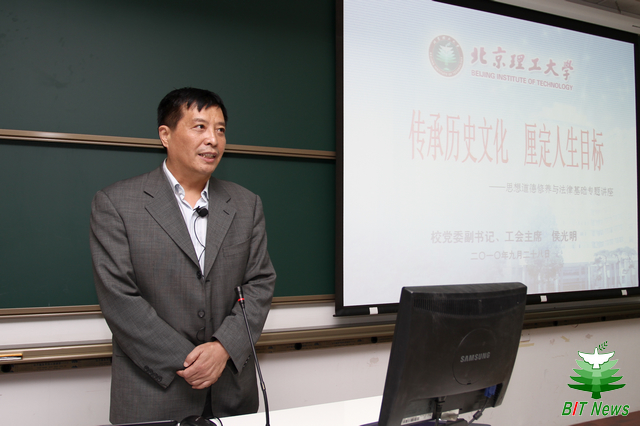 北理工党委副书记侯光明为2010级本科生上第一堂政治理论课