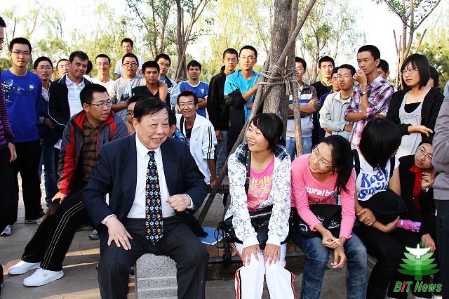 中国科学院院士、中国工程院院士、德赢AC米兰中国官方网站名誉校长王越与参加揭幕仪式的同学们畅谈学习与生活。