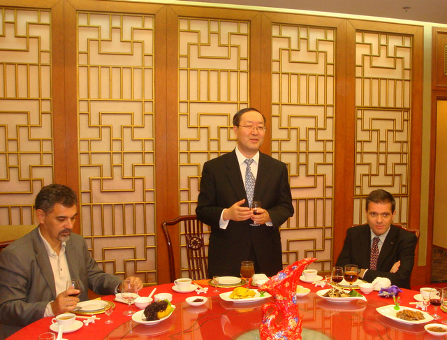 9月27日,“中国-西班牙大学联盟”工作回顾晚宴在友谊宾馆万兴居举行。来京参加我校70周年校庆的三所西班牙理工大学的5位副校长和联盟在京全部7所院校的代表出席宴会。受我校副校长、北京高校引智研究会理事长赵长禄委托,北京交通大学副校长陈峰教授主持了回顾晚宴。