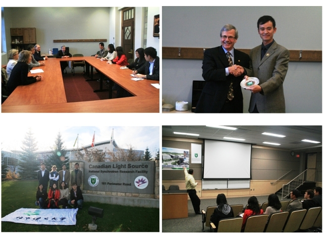 宾主双方友好交谈互赠礼品、代表团参观加拿大光源等萨省大学科研机构