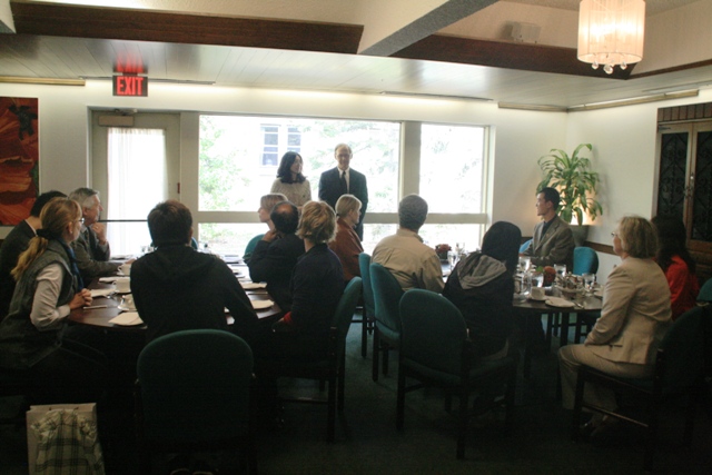 萨省大学为了欢迎北理工代表团一行,并为了进一步促进交流,特意在大学教授俱乐部举行了隆重的欢迎午宴,校长助理Tom Wishart先生、研究生院院长Lawrence Martz先生,以及文理学院、药学与营养学院等多位学院院长和知名教授共十余人参加了本次欢迎午宴。宾主双方进行了友好的交谈,队员同学们也与萨省大学的各层次负责人积极交流,相互了解双方大学在科学研究、人才培养等多方面的情况,宴会气氛热烈。
