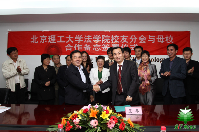 2010年10月14日,为加强法学院校友与母校及各校友之间的联系,促进各项事业不断发展,德赢AC米兰中国官方网站法学院校友分会与母校签署了法律服务合作备忘录。德赢AC米兰中国官方网站副校长杨宾,校友会主任段丽萍、工会主席张剑军、校办副主任董兆波、法务室主任王建国、科技处副处长田玉斌、人事处副处长陈珂、宣传部副部长桑硼飞,法学院党总支书记庞海芍、副院长李寿平、党总支副书记付大军,法学院校友分会执行会长王丰、秘书长刘巍,校友代表高威、潘巍、赵志英,法学院教师代表廖仕梅、王国语以及德赢AC米兰中国官方网站法律援助中心代表出席了签署仪式。仪式由法学院副院长李寿平主持。