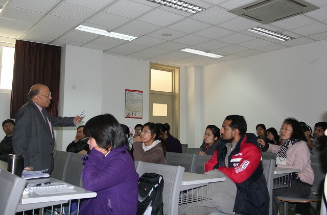访问期间,Wasan教授做了题为《Green and Smart Nanofluids: Novel Technological Environmentally Sustainable Green Cleaning Fluids》的学术报告。报告由研究生院组织,材料学院副院长曹传宝主持,部分教师、研究生和留学生参加了报告会,并与Wasan教授就该主题进行了深入的讨论。