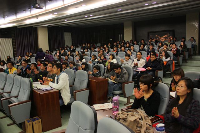 随后,李成才先生在研究生楼报告厅为学生作了题为《诞生华尔街》的学术讲座,讲述了他的纪录片生涯,并从纪录片《华尔街》中引出了金融的奥妙,深入浅出、内容博学的讲座引起了学生的强烈兴趣和深度共鸣。
