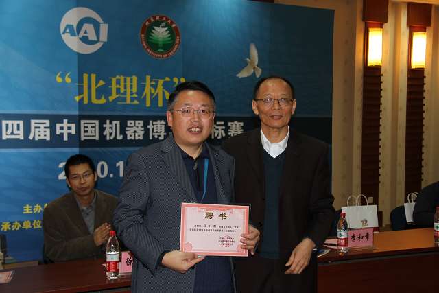 领导和专家致辞结束之后,由中国人工智能学会秘书长王万森教授为机器博弈专业委员会常委委员颁发了聘书。