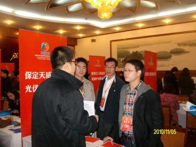 11月5日、6日,我校应河北省人力资源和社会保障厅的邀请,参加了在河北会堂举办的为期两天的首届中国河北海内外高层次人才洽谈会。此次洽谈会由河北省政府主办,我校派出招生就业工作人员和博士生、硕士生代表参加了本次会议。