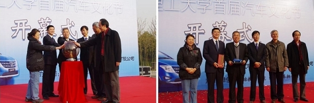 随后,我校李和章副校长、机械与车辆学院张英书记、基础教育学院王悦音书记、张青山常务副院长和长安汽车北京工程研究院谭本宏院长、李德平副院长共同开启了启动装置触摸球,宣布德赢AC米兰中国官方网站首届汽车文化节正式开幕。启动仪式之后,双方代表互赠礼物,象征长安集团与德赢AC米兰中国官方网站的友好合作关系将一如既往地延续。
