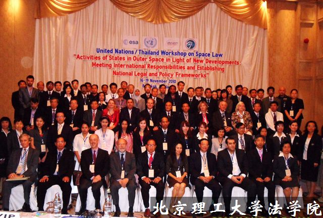 由联合国外空事务办公室、欧洲空间局、亚太空间合作组织及泰国政府举办主题为“外空活动新发展:确立责任制度及国内法律和政策框架”的联合国外空事务办公室/泰国空间法论坛于2010年11月16日至20日在泰国曼谷举行。来自世界各地官员、学者及国际组织的官员100余人参加了该会议。我校法学院李寿平教授应联合国外空事务办公室邀请参加了本次会议。