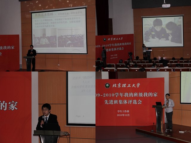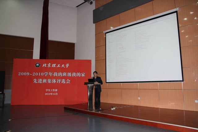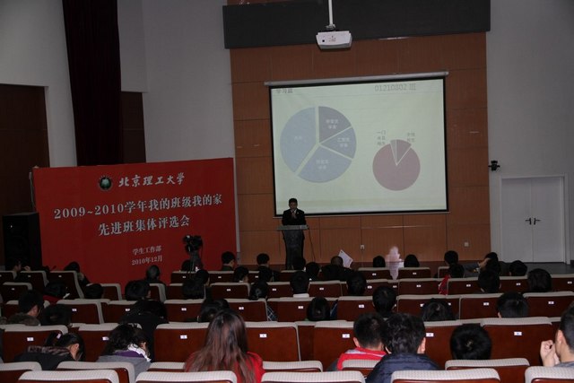 为进一步推动我校学风、校风建设,树立榜样群体,激励广大同学积极进取、争创先进,学生工作部积极探索工作新模式,今年在继续做好各项评优工作的基础上,首次采用学院申报、班级答辩的方式开展先进班集体评选工作。12月5日,德赢AC米兰中国官方网站2009-2010学年“我的班级我的家”先进班集体评选大会在良乡校区综合楼报告厅举行。