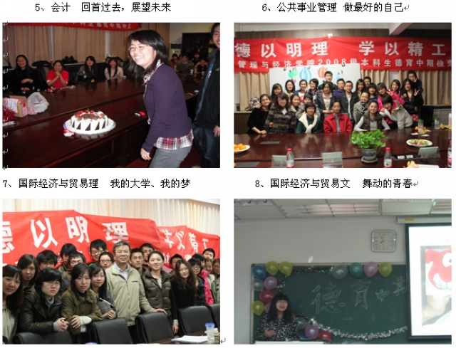 管理与经济学院2008级本科生德育中期检查圆满结束,通过这次德育中期检查,学院加强了对学生的交流与了解,老师增进了与学生的沟通与情感,学生提高了自身的认识与水平。相信通过此次活动,老师和学生能进一步聚集在管理与经济学院和谐的大家庭中,成长成才共促进步!