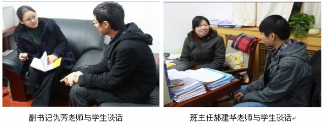 通过班主任与班级同学的真诚交流,辅导员对重点同学的集中关注,学院领导对突出和特殊同学的了解关心,我院的深度辅导工作有层次有重点地全面开展,为同学们的健康全面发展保驾护航!