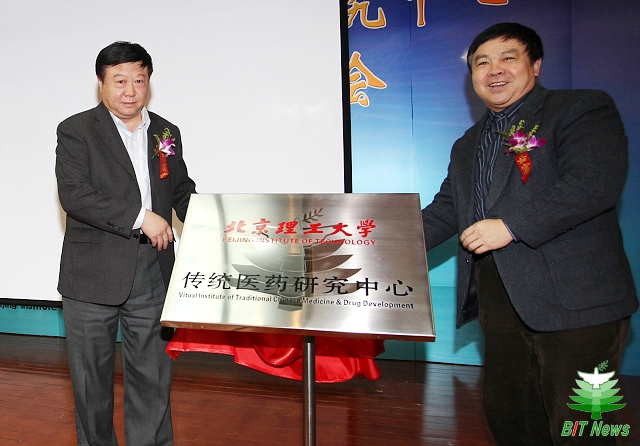 杨宾与吴刚共同为中心揭牌,标志着我校传统医药研究中心正式成立。