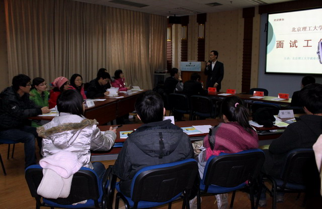 2010年12月29日,北理工2010年的最后一期面试工作坊落幕。本期面试工作坊仍由我校就业中心林骥佳老师主讲,但与以往不同的是,本期工作坊邀请了优职大学生就业研究院的高级职业顾问王殿明先生和梁飞先生做现场点评嘉宾。两位职场专家的参与,为学生提供了一个更加真实的职场环境和来自企业的建议。从现场回收的问卷来看,本期工作坊的好评率达到100%,这在工作坊开办以来尚属首次。鉴于合作产生的良好效果,双方商定,今后每期工作坊优职公司都将派出职业顾问参加。同时,双方在有关提升毕业生就业能力的其他领域也将开展长期的合作。