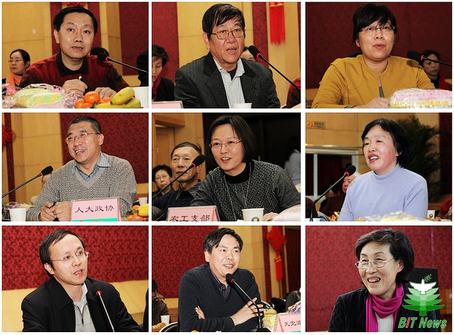 全国政协委员王涌天教授、吴平东教授,北京市人大代表廖晓钟教授、北京市政协委员高利教授、民主党派代表屈锋教授、侨联主席蒋本珊教授、无党派人士代表李健教授、林海教授、统战部长李爱英等分别发言。大家结合自己参与国家、北京市的参政议政工作及学校的民主管理、民主监督工作体会畅所欲言,同时感谢学校党委的关怀和统战部的工作,并对学校相关工作提出了建议。