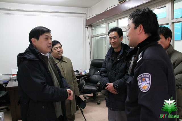 校长胡海岩,副校长杨宾在中关村校区走访了后勤集团配电室、锅炉房,保卫处总监控室、值班室,校医院,居管会等部门。