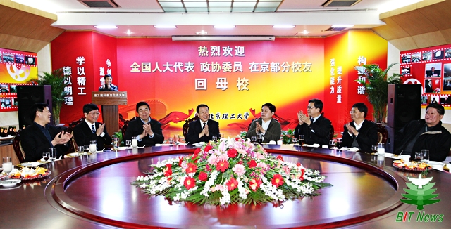 郭大成首先致辞,他对肩负重托的两会校友代表在百忙之中抽出时间回校参加座谈会表示感谢,感谢校友对学校发展建设无私的关怀与帮助。