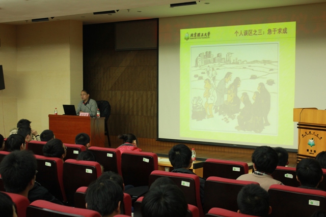 在学员们热烈的掌声中,学校党委组织部副部长刘存福老师给同学们带来了精彩的开营报告。刘存福老师以“以科学发展观为指导,做好学生的表率”为题,就目前国际形势与社会热点问题进行深刻剖析,并从坚定理想信念、个人全面发展、坚持以人为本和培养团队精神四个方面给学员们带来了精彩的报告。报告中,刘老师旁征博引,幽默诙谐,学员们认真聆听,热情洋溢,会场不时爆发出热烈的掌声。通过刘老师的报告,学员们深刻理解了学生骨干的表率作用,进而促进坚定理想信念努力奋斗。