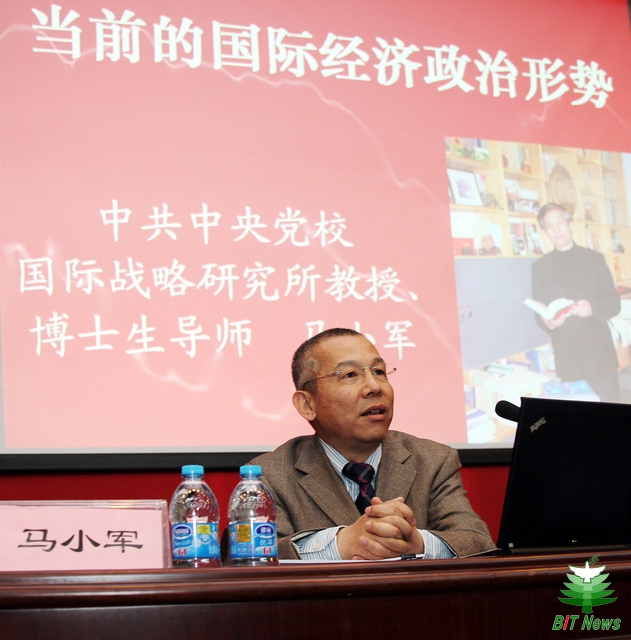 启动仪式结束后,中共中央党校国际战略研究所博士研究生导师马小军教授为我校师生作《当前国际经济政治形势》专题报告。马小军教授在报告中分析了当前的世界经济形势,对金融危机后的世界经济格局“三级化”趋势进行了独到而深刻的阐述;从中东风云突变和日本大地震两个热点话题入手,深入浅出地讲解了当前复杂多变的国际政治形势。此次讲座使学生党员对于当前国际政治经济形势及我国面临的机遇与挑战有了更深层次的了解。“伟业永志”学生党员纪念建党90周年活动期间,学生工作部将继续邀请党建专家为学生党员作专题报告,引导学生党员学习党史、认识党情、培养党性,了解形势政策不断深化系列教育活动主题。