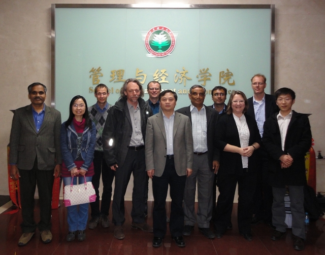魏一鸣教授对各位学者表示热烈欢迎,并陪同各位专家一行参观了中心实验室和管理与经济学院,简要介绍了学院和中心的发展历程、重点研究方向以及主要研究成果等。各位专家与中心研究人员就全球气候变化、国际气候谈判、发展中国家经济社会发展等相关问题开展了广泛而深入的交流。大家均对双方长期以来的合作表示肯定,并希望进一步创造机会,加强合作、扩大交流。