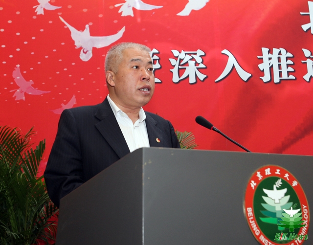 校党委书记郭大成发表了重要讲话。郭书记在讲话中阐述了新形势下加强党建带团建工作的重要意义,提出了下一阶段党建带团建工作的总体要求以及“带思想建设,促进团员青年理想信念更加坚定”、“ 带组织建设,促进团的组织和工作全面覆盖”、“ 带队伍建设,促进团干部、团员青年能力素质显著增强”、“ 带创先争优,促进共青团生力军和突击队作用有效发挥”的“四带四促”要求,强调共青团组织要围绕人才培养中心任务开展工作,通过积极开展教育教学一体化工作,通过积极开展学生科技创新和社会实践活动,通过全面推进综合素质教育,自觉将胡锦涛总书记的“三点希望”落实到团的各项工作之中。此外,郭书记还对全体专职团干部和学生骨干提出了“政治上要过硬”、“ 作风上要扎实”、“ 自律上要严格”的三点要求。郭书记的重要讲话,体现了党委对党建带团建工作的高度重视,体现了对共青团和全体专职团干部、学生骨干的殷切期望,为下一步工作指明了方向。