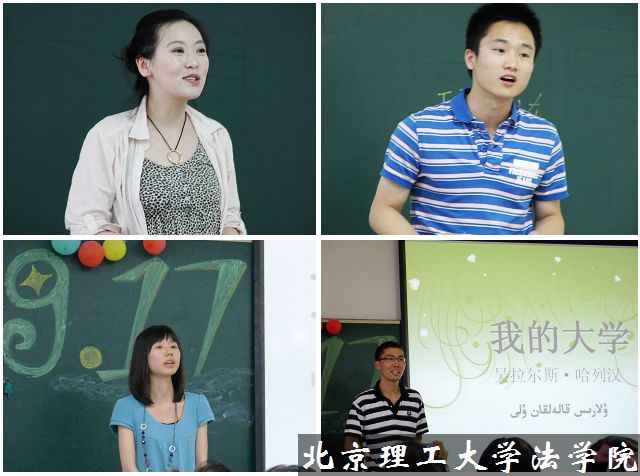答辩会上,两个毕业班的同学用生动的形式、真诚的话语追溯了大学四年来的成长历程,梳理大学生活中的点点滴滴,在珍惜与感动中,看到了自身的成长与转变。法学一班的同学们把德育开题报告会上许下的心愿拿出来,检验自己是否兑现了当初的诺言,饱含深情地朗诵了属于他们自己的诗歌;法学二班的同学们在追忆良乡的视频中感受着曾经,写下了他们对母校的留恋与祝福,流露出了对北理工及法学院的无限深情。