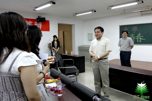 在08年2007级学生德育答辩开题报告会上,胡海岩校长就亲临01510705班,听一群心怀高远的青年倾诉豪情、畅谈理想,为一群出入大学的晚辈指点迷津、把握航向。四年来,班级取得的每项成绩都离不开学校、学院的教育培养,离不开领导、老师的亲切关怀。答辩结束后,同学们纷纷表示,要牢记恩师的教诲,牢记北理工的培养,牢记时代赋予的责任,牢记历史赋予的使命,与祖国同呼吸共命运,与母校共奋进同出发!