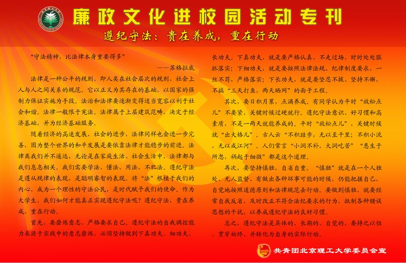 “遵纪守法、诚实守信”廉政文化进校园主题宣传专刊