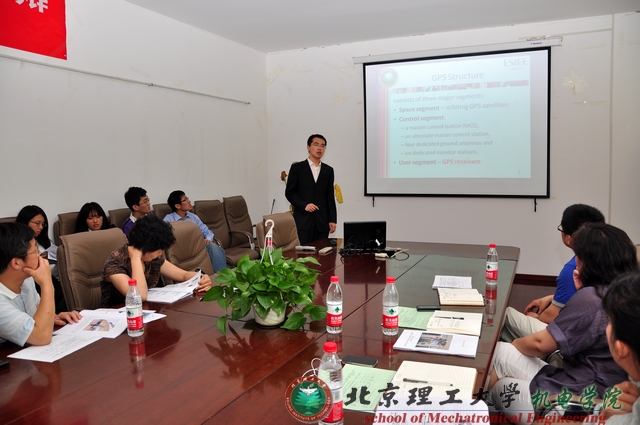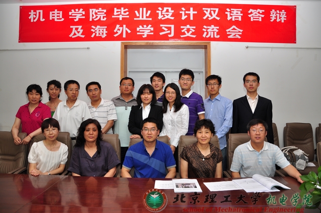接下来,来自机电学院机械电子专业的寇宇翔、郝一阳分别汇报了他们在法国亚眠高等电子与电工技术工程师学院做的毕业设计“Orientation for Robot Using Micro-controller PIC18F4550 & GPS Chip EB-85A on NMEA Protocols”,“Design of control systems of three-phase induction machine under MATLAB/SIMULINK and dSPACE environment”;机械电子专业的孙云浩、胡丹、王禛,探测制导与控制专业的曾泽贤分别汇报了他们在香港中文大学做的毕业设计“Interface based on computer vision for nasal robot”、“Measurement and data processing of ECG signal”、“Research of the control of automatic helicopter”、“Force-reflecting foot-controlled interface”;值得一提的是机电学院特种能源与烟火技术专业的张藜也做了题为“Research on an assessment method of one pyrotechnic cutter’s stability under extreme temperature”的毕业设计报告,张藜在严楠教授的指导下,从毕业设计开题、中期汇报到毕业设计报告都采用英语汇报形式。毕业设计答辩会历时2个小时,答辩组老师对每位毕业生在课题中的学术问题进行了广泛而深入的探讨, 既对各位同学取得的成绩进行了肯定,也对毕业设计与答辩过程中存在的问题提出了意见。