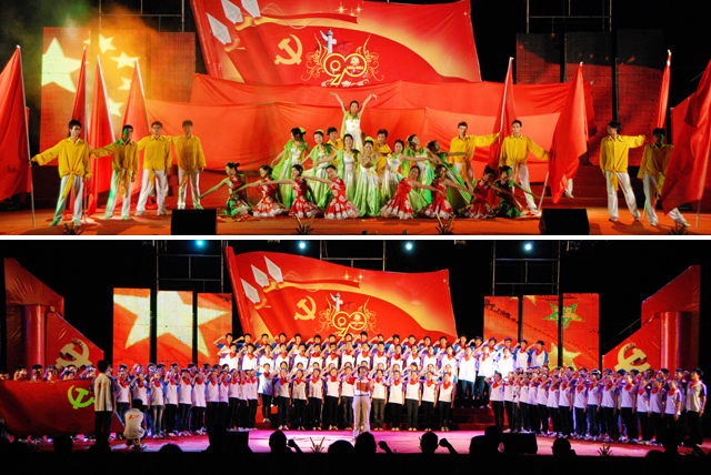 随后进行的文艺演出精彩纷呈,台上师生的演绎,为广大党员同志再现了90年中国共产党的光辉历程。演出间隙,在场师生党员重温入党誓词,谨记一名共产党员的使命和誓言。